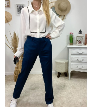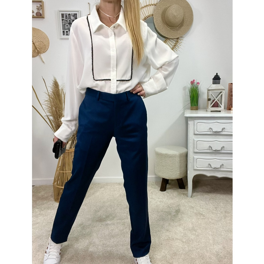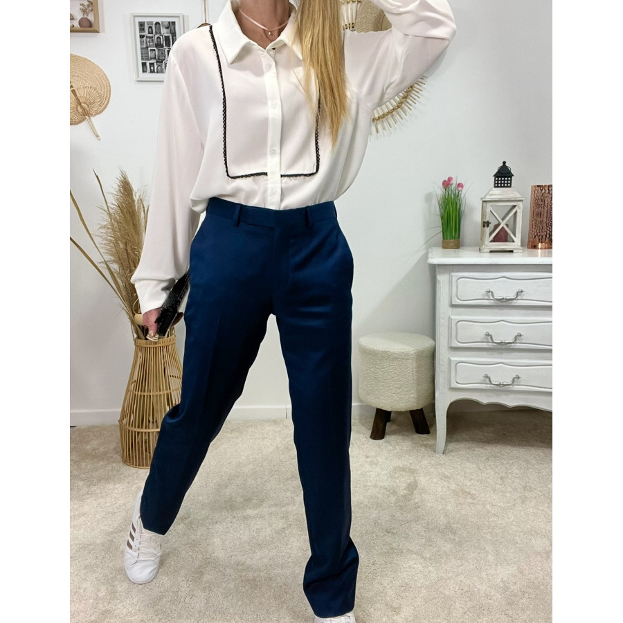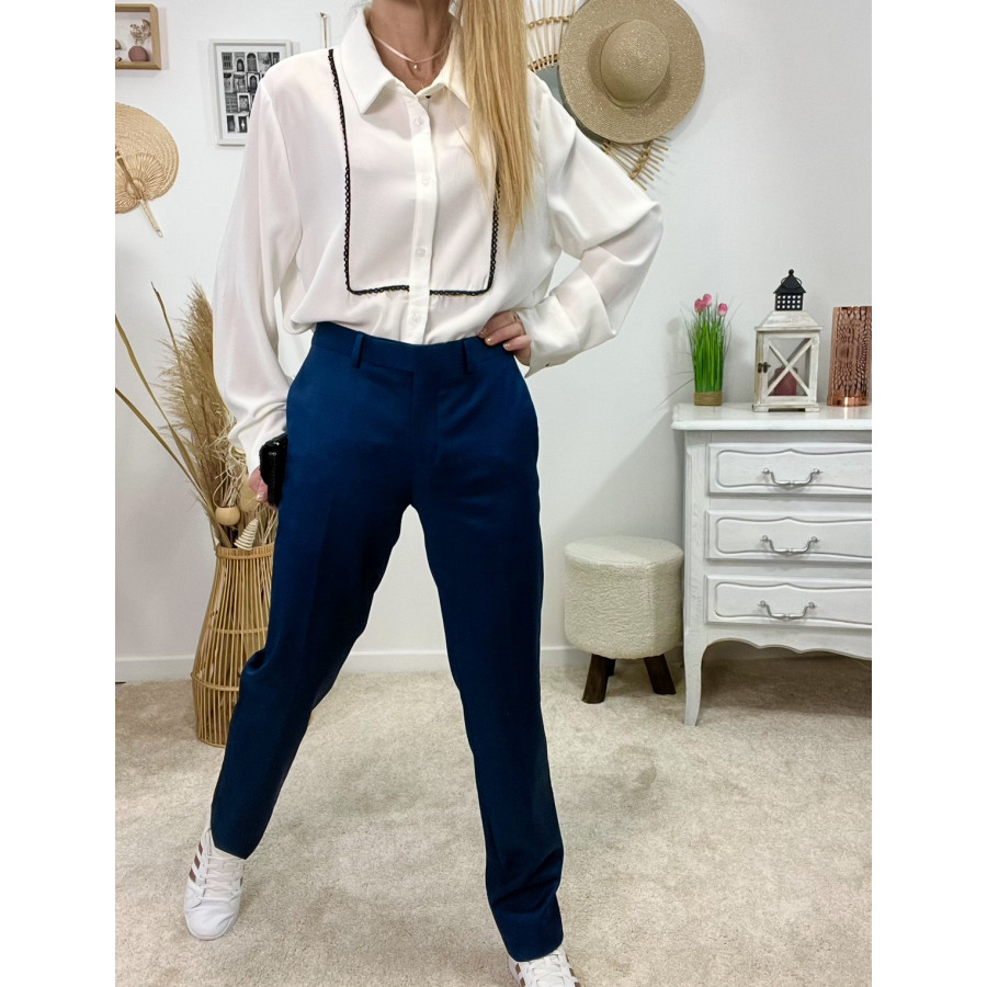 * Pantalon tailleur bleu marine, poches latérales
