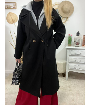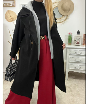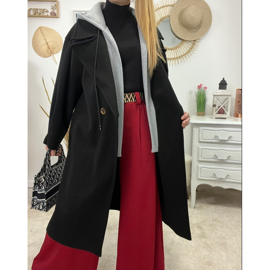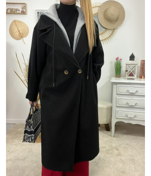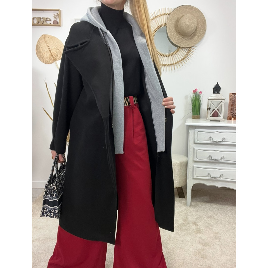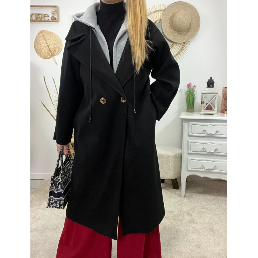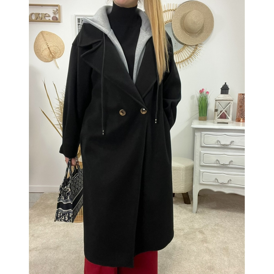* Manteau long en laine noir coupe ample avec capuche grise style sportwear