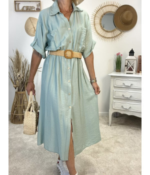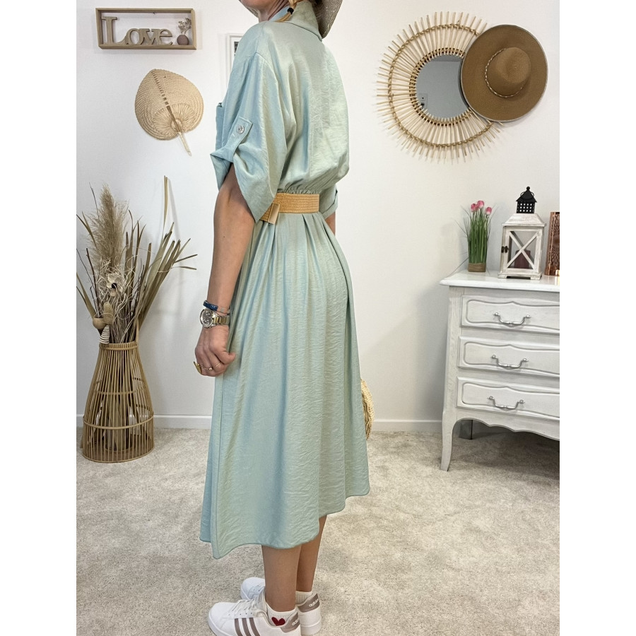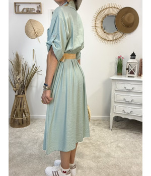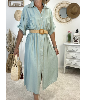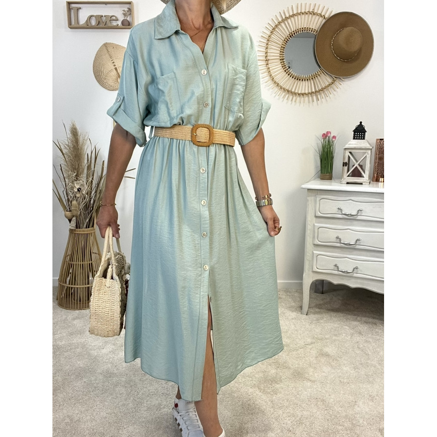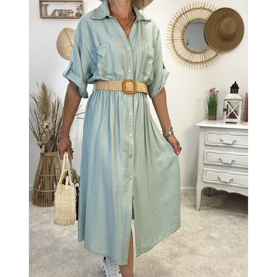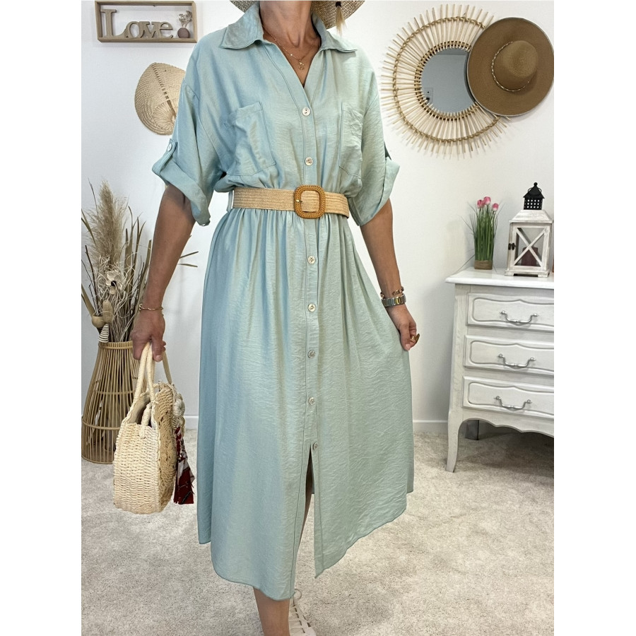 * Robe longue avec ceinture tressée et entièrement boutonnée