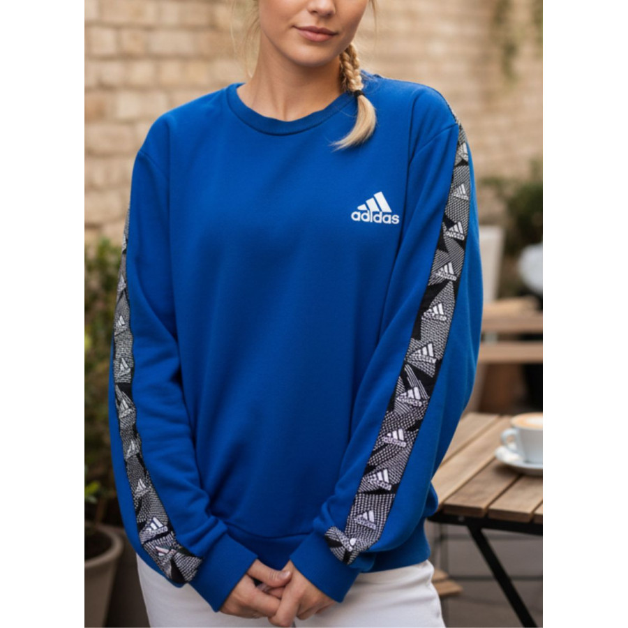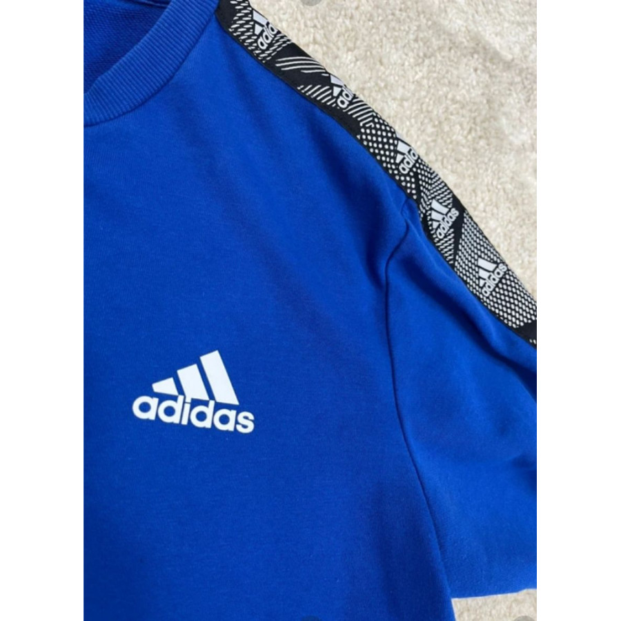 * Sweat shirt bleu roi avec logo brodé blanc sur la poitrine et bandes sur les manches