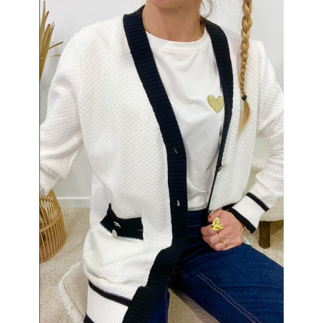 * Gilet blanc et bordures noires, boutonnage en métal "Lettres gravées"